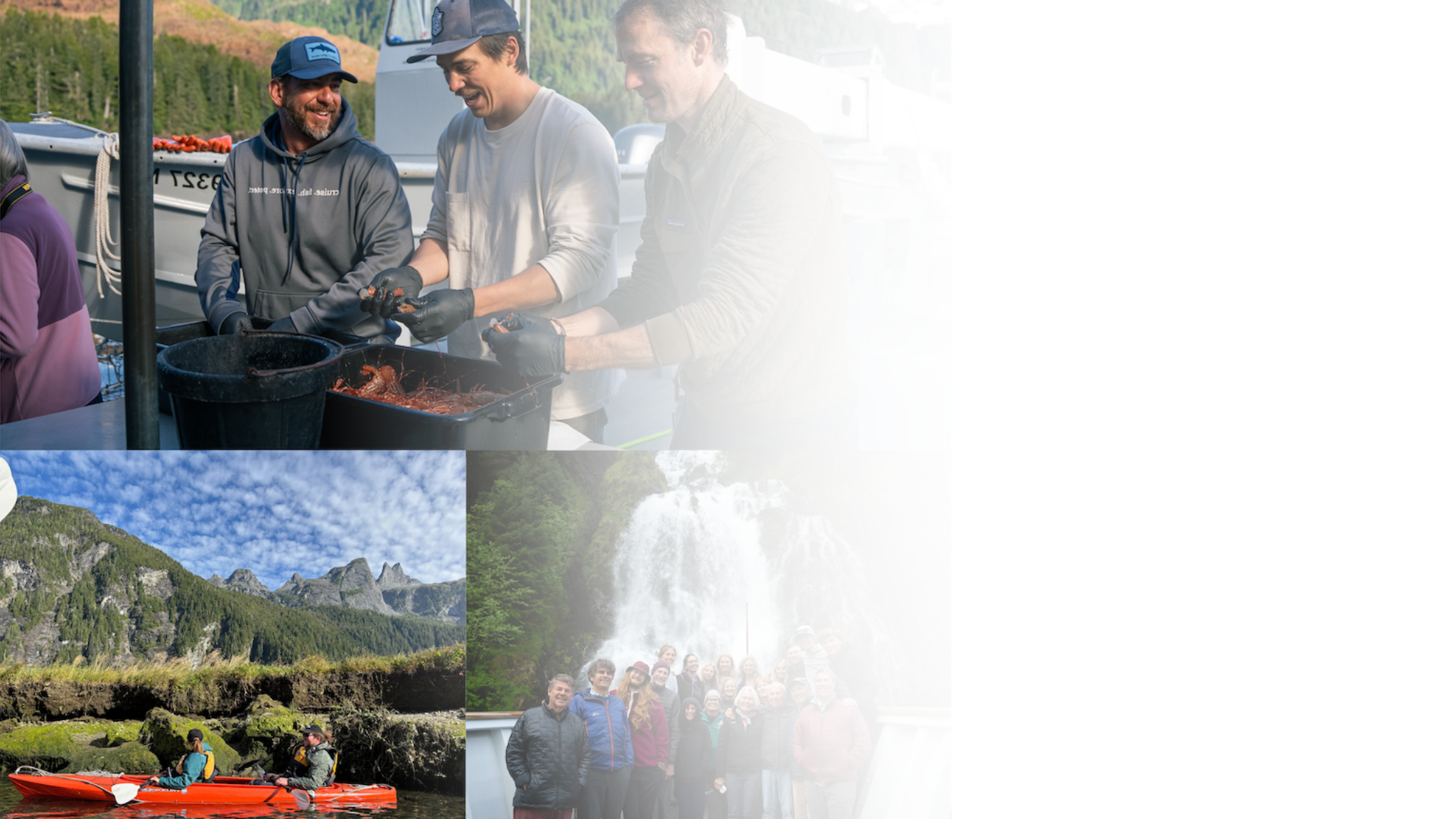 The day is yours to explore this dramatic landscape. You might spend your afternoon kayaking along the steep cliffs and waterfalls right in our anchorage, fly-fishing in the nearby stream, or saltwater fishing from one of our skiffs. If you prefer a more relaxing pace we recommend a skiff tour while enjoying the views, accompanied by snacks and a beverage in hand. A highlight of the day is often setting shrimp pots in hopes of catching Alaskan Spot Prawns. This activity, a favorite of our guest provides the freshest possible ingredients for our chefs to prepare. Enjoy an educational presentation from our naturalist followed by a locally sourced dinner in the fantail immersed by the rugged beauty of Baranof Island.